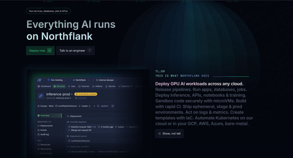 Northflank takes a slightly different approach to AI infrastructure. Rather than just acting as a standalone GPU host, Northflank is widely known for its cloud orchestration capabilities. It is designed to help developers manage containers and optimize spot instances across major hyperscalers.